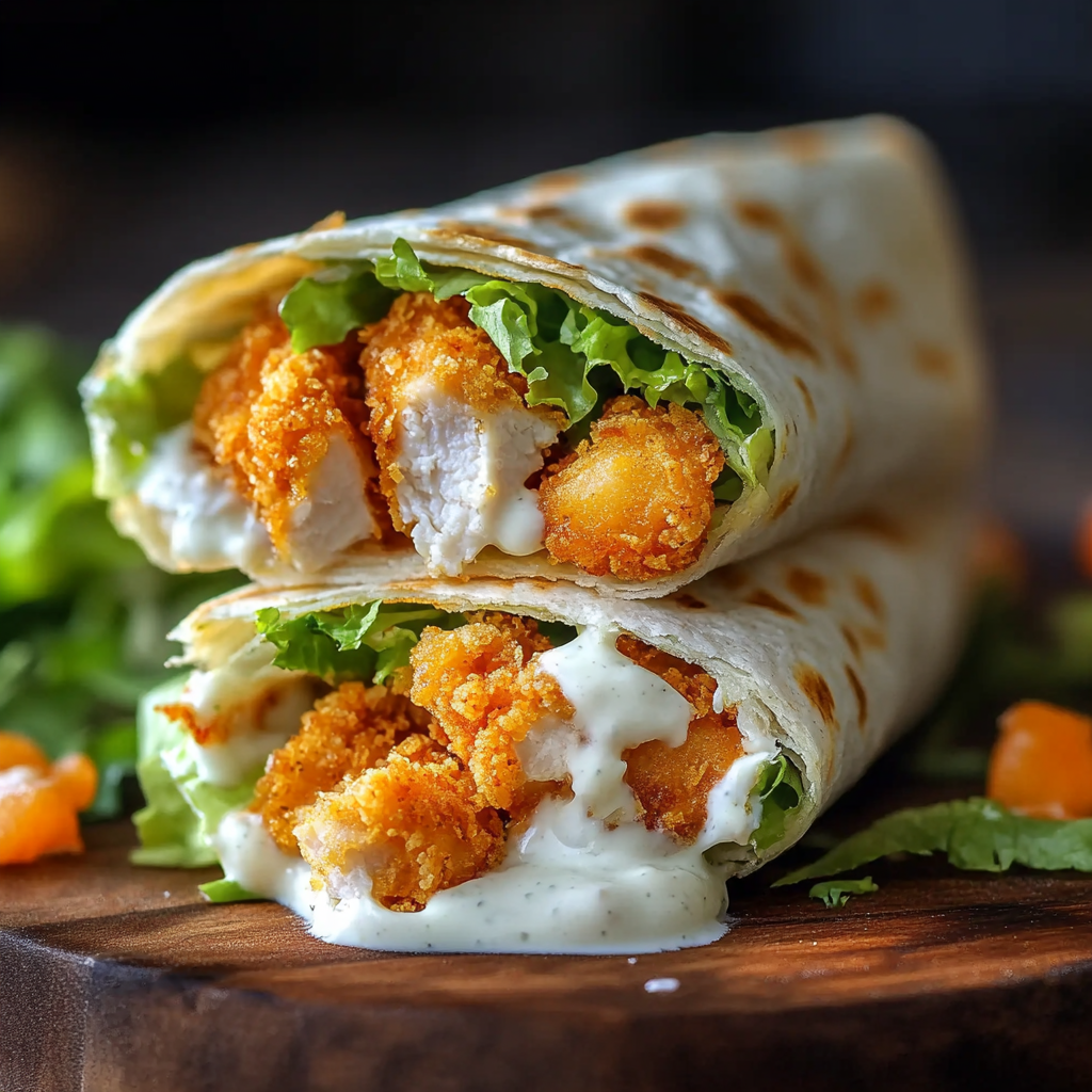 A crispy chicken ranch snack wrap is a delicious combination of tender, seasoned chicken wrapped in tortillas with fresh vegetables and creamy ranch dressing.