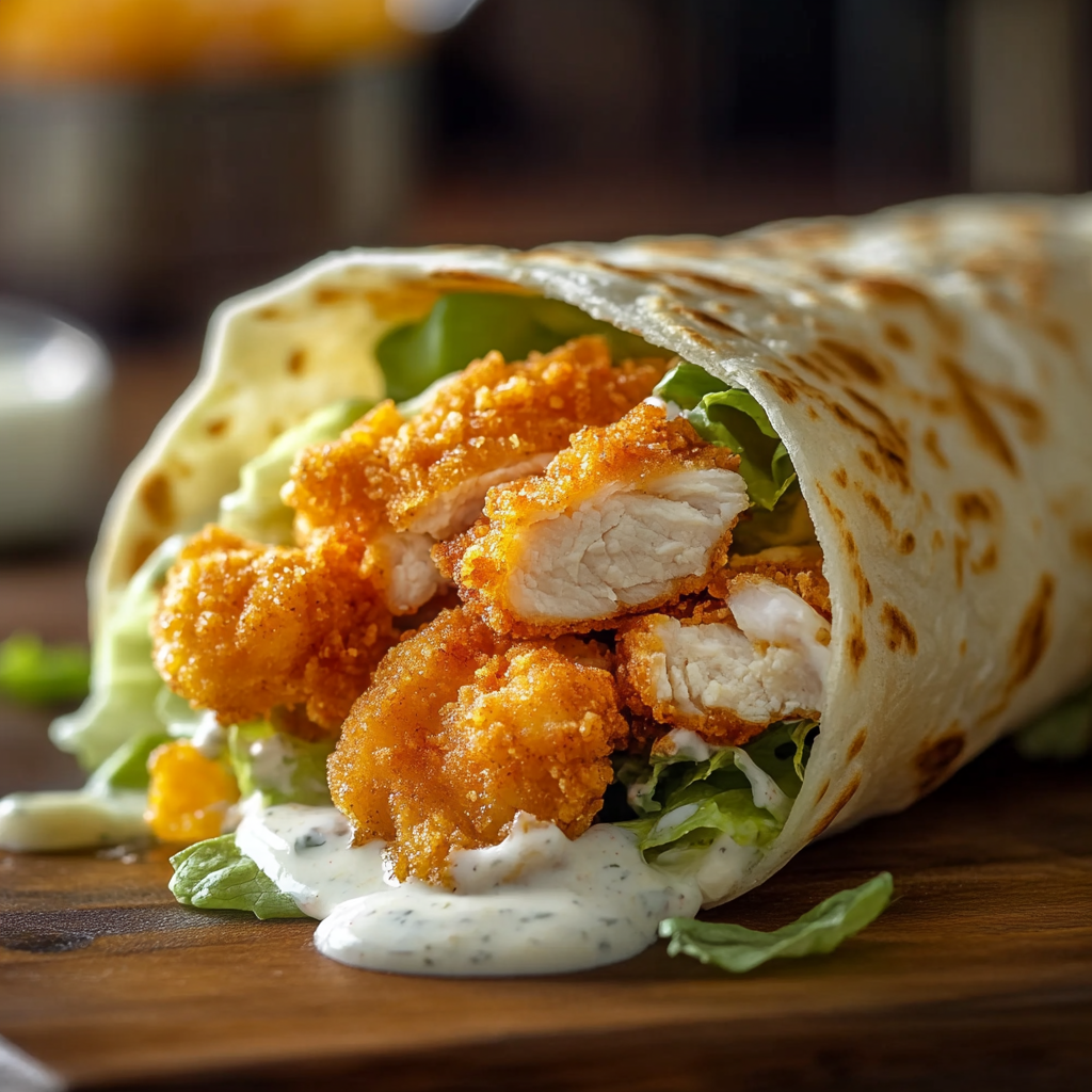 A crispy chicken ranch snack wrap is a delicious combination of tender, seasoned chicken wrapped in tortillas with fresh vegetables and creamy ranch dressing.