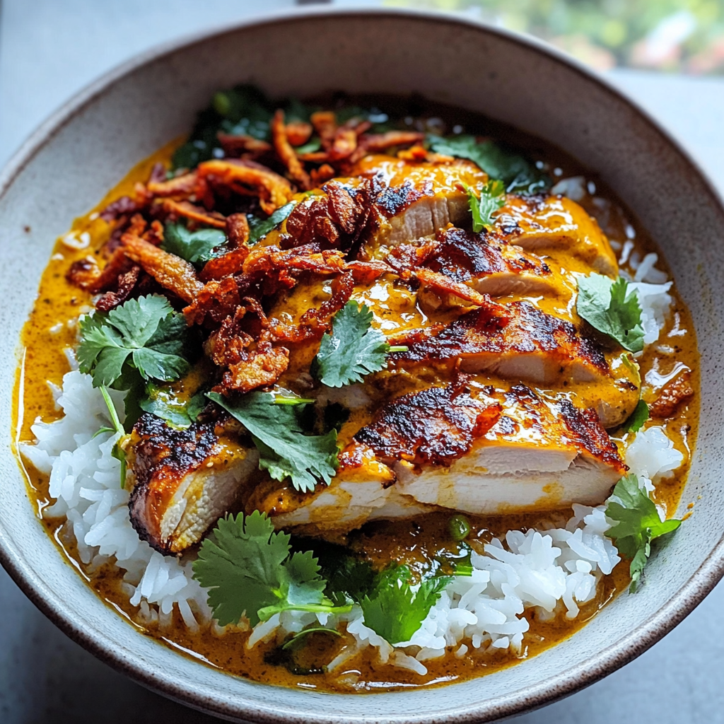Experience the delightful fusion of flavors in this Curried Coconut Chicken & Rice recipe. With a creamy coconut milk base enriched by aromatic spices, this dish transforms simple ingredients into a vibrant meal perfect for any occasion. Whether you’re hosting friends or enjoying a cozy family dinner, this quick and easy recipe comes together in just 30 minutes. The succulent chicken pairs beautifully with fluffy rice, making it a comforting choice that will impress everyone at the table. Topped with crispy fried onions and fresh herbs, your plate will not only taste incredible but also look stunning. Dive into a bowl of this satisfying dish and savor the bold flavors of Thai-inspired cuisine tonight!