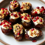 These Mascarpone Stuffed Dates with Pomegranate and Honey are a delightful treat that combine creamy mascarpone cheese with the natural sweetness of dates, topped with vibrant pomegranate seeds and drizzled with honey. Perfect for parties or special occasions, this recipe offers a unique flavor profile that balances sweetness and richness in every bite.